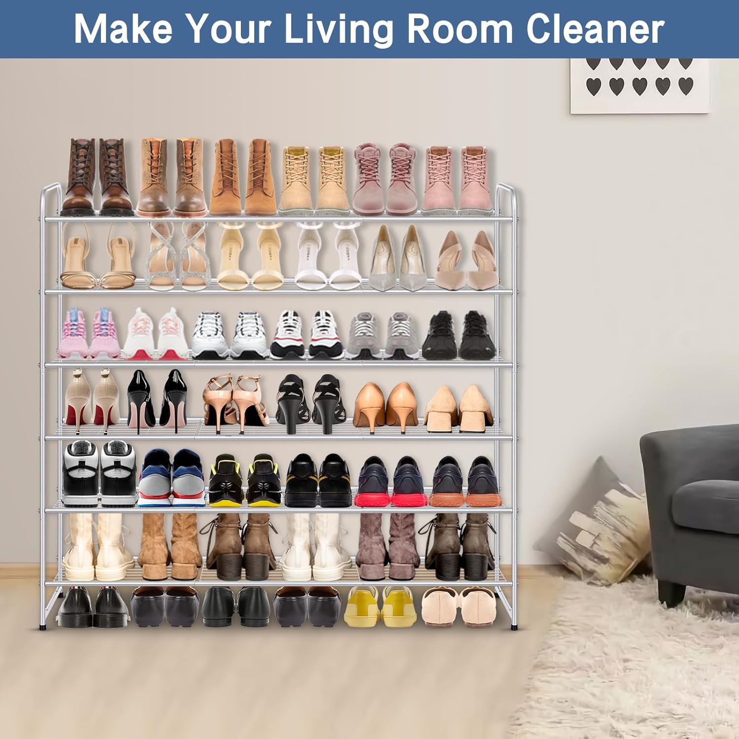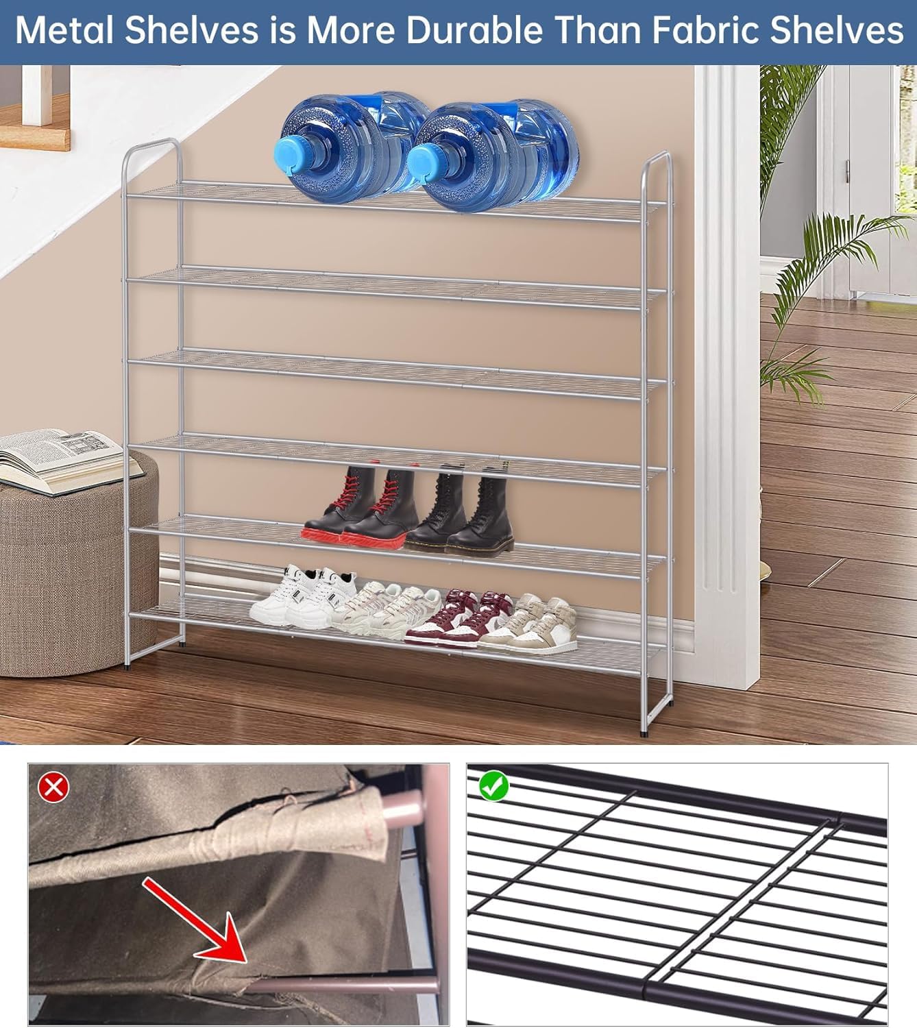 【Meet Multiple Needs】 The metal shoe rack for garage also can be used in more places, such as living room, bedroom, entryway, entrance, garage, dorm, apartment, mudroom etc. It's very suitable for family storage