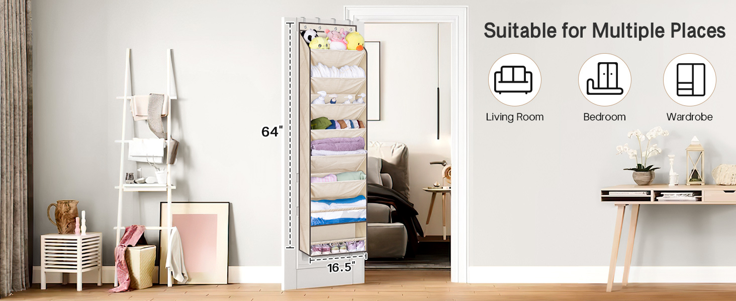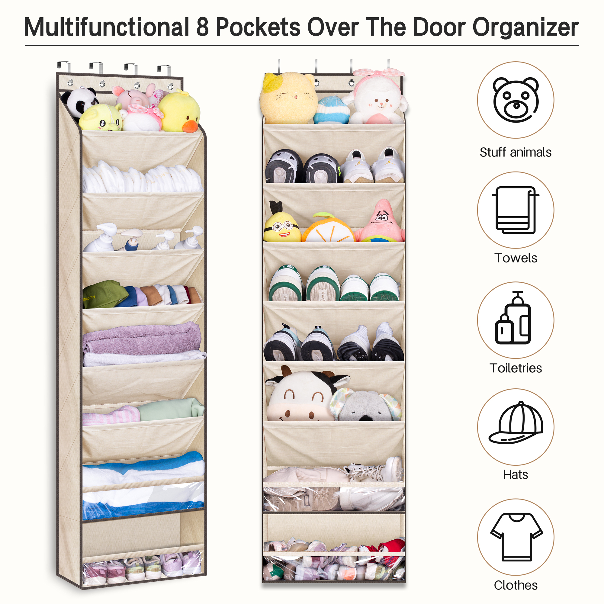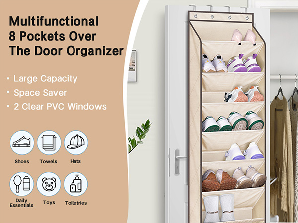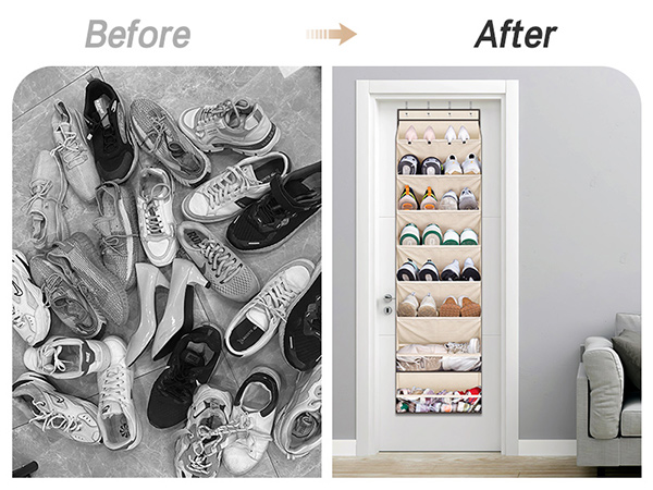 【Multifunctional Use】: The door shoe organizer not only store shoes efficiently, but also be widely used for storing family daily priority items such as baby care, stuff animals, cleaning supplies, toiletry items